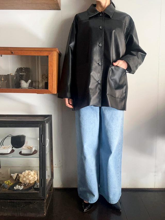 2016年春夏コレクションからスタートしたMIDIUMISOLID 自然から受ける力強さ、美しさ。偶然の出会いから感じる驚きや時めき。積み重ねた思いを結びつけていく。そんな感性の中で生まれるブランドです。 オーバーサイズのカバーオールジャケット。 縦長のゆったりしたシルエット、普遍的、ベーシックなデザインでいつものスタイリングに合わせ易いです。 前下がりにデザインされた襟が女性らしい印象に。 シンセティックレザーなので初めから柔らかい着心地で、風を通さず、雨の日も気にせず着用いただけます。 裏地付きだから、春は直接触れても肌触り良く、秋冬は擦れによるニットの毛玉の心配をしなくていいのが嬉しいです。 素材:合皮革 ( 裏地 : ポリエステル 100% ) カラー : ブラック 、ブラウン サイズ:F(身幅:62cm 肩幅 :52.5cm 袖丈 : 53cm 着丈: 74cm ) ※個体差や多少の寸法差がある場合がございます。 予めご了承ください。 ※オンラインストアでは一部実店舗と在庫を共有している商品が 含まれております。 在庫反映のタイミングによりましては、ご注文いただいた商品の在庫が ない場合もございます。 その際はメールにてご連絡致しますので、ご了承ください。