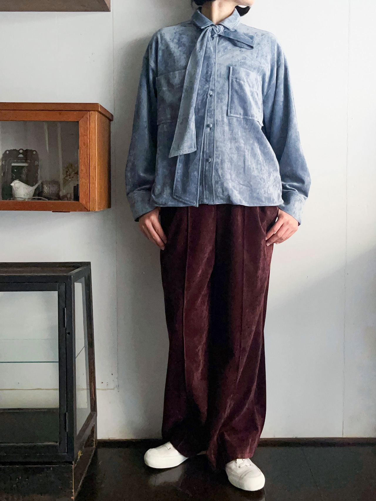 ブラウスやジャケットとしても幅広く活用でき、着脱可能の長めのリボンタイがコーディネートのアクセントになリます。