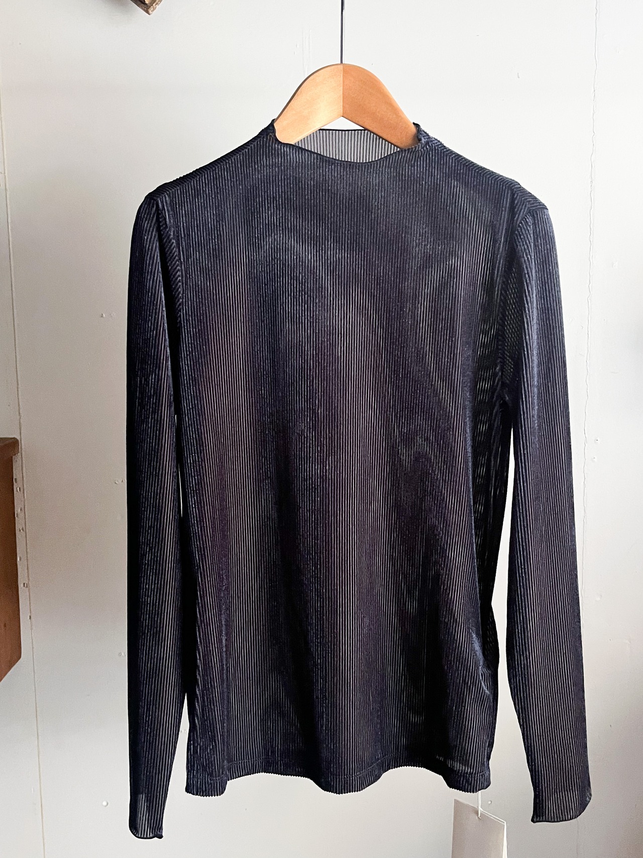 タイトなシルエットでインナー使いに重宝します。薄手の生地ですがベロア生地なので温かみがあります。差し色にオレンジを取り入れた華やかなカラーも魅力的。シンプルなデザインなのでベストを重ねたりとオシャレを楽しんでいただけるアイテムです。秋の立ち上がりに重宝していただけます。