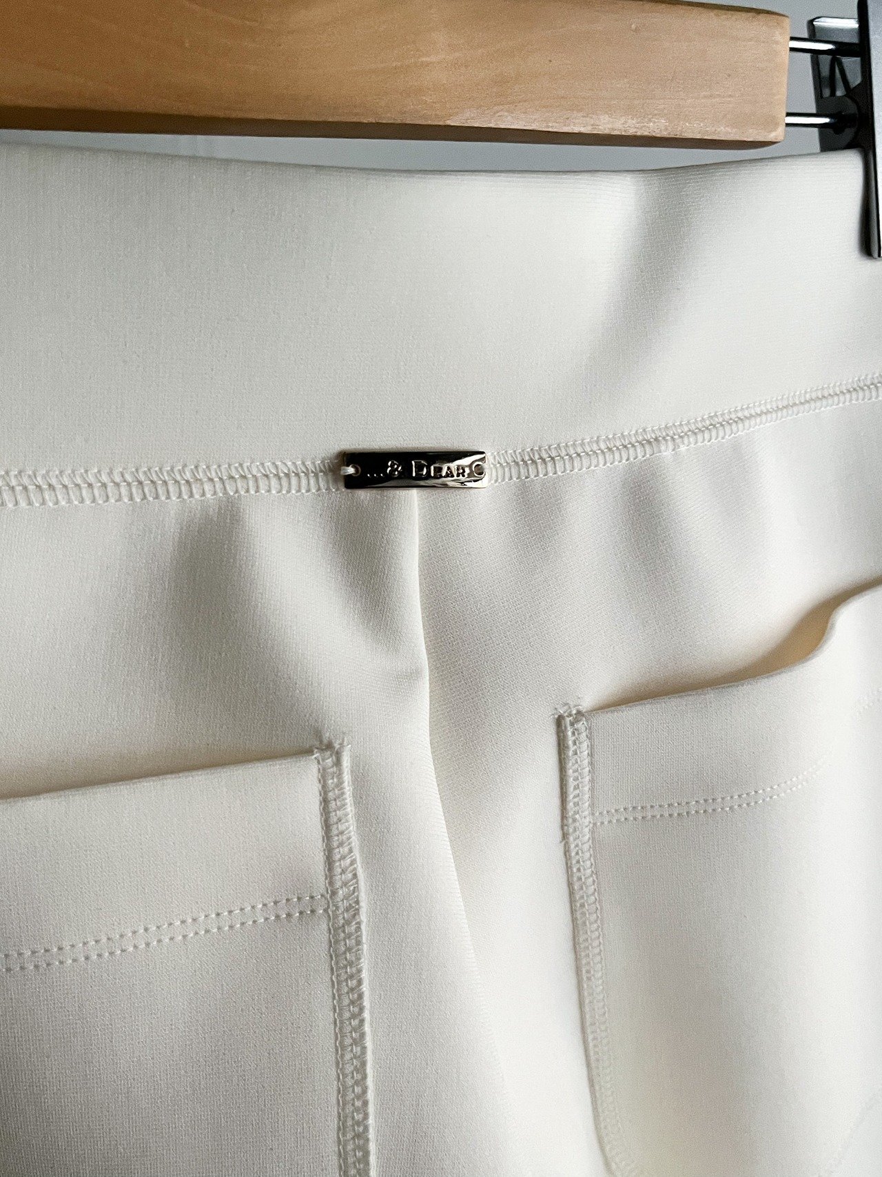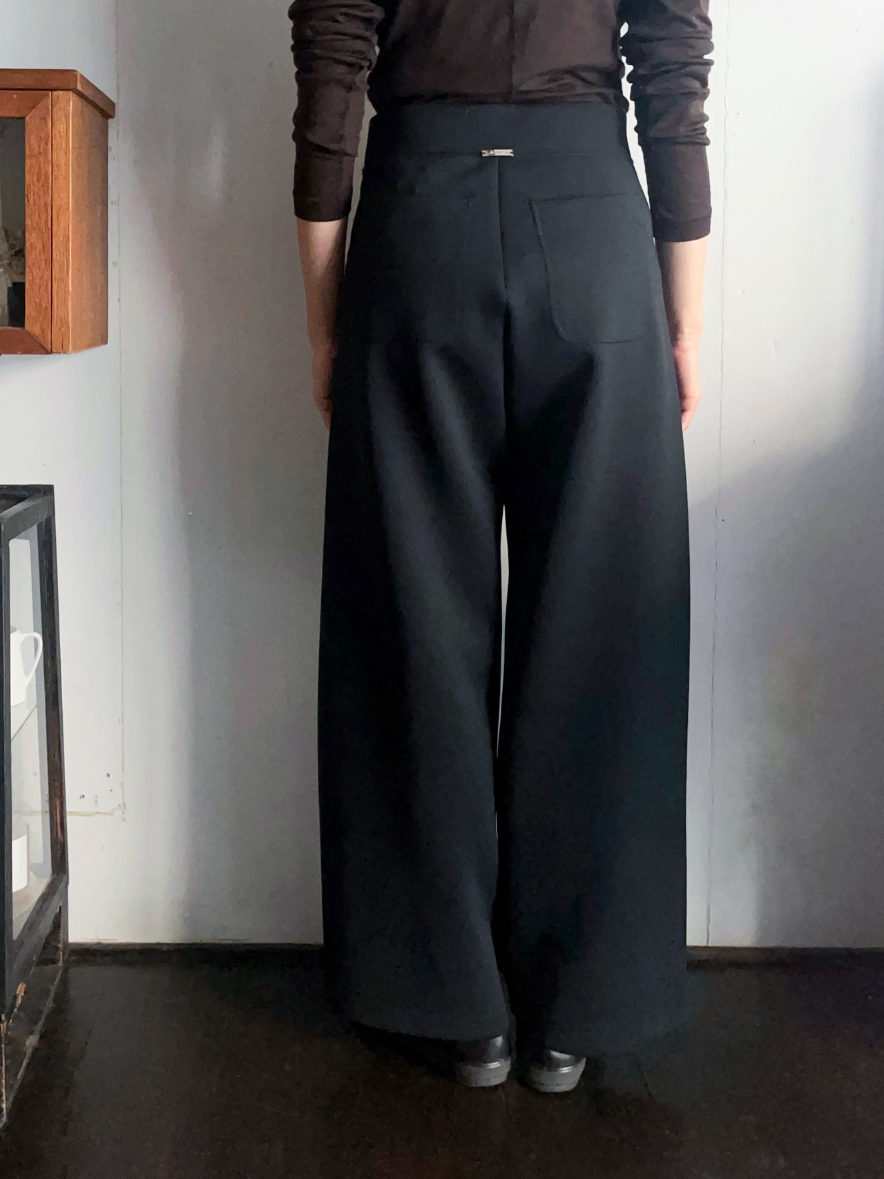 しっかりとマークしたウエストから裾に向かってシルエットが広がり、脚が長くスタイルアップされ、バックポケットはインナーを響かせにくくヒップを立体的に見せます。