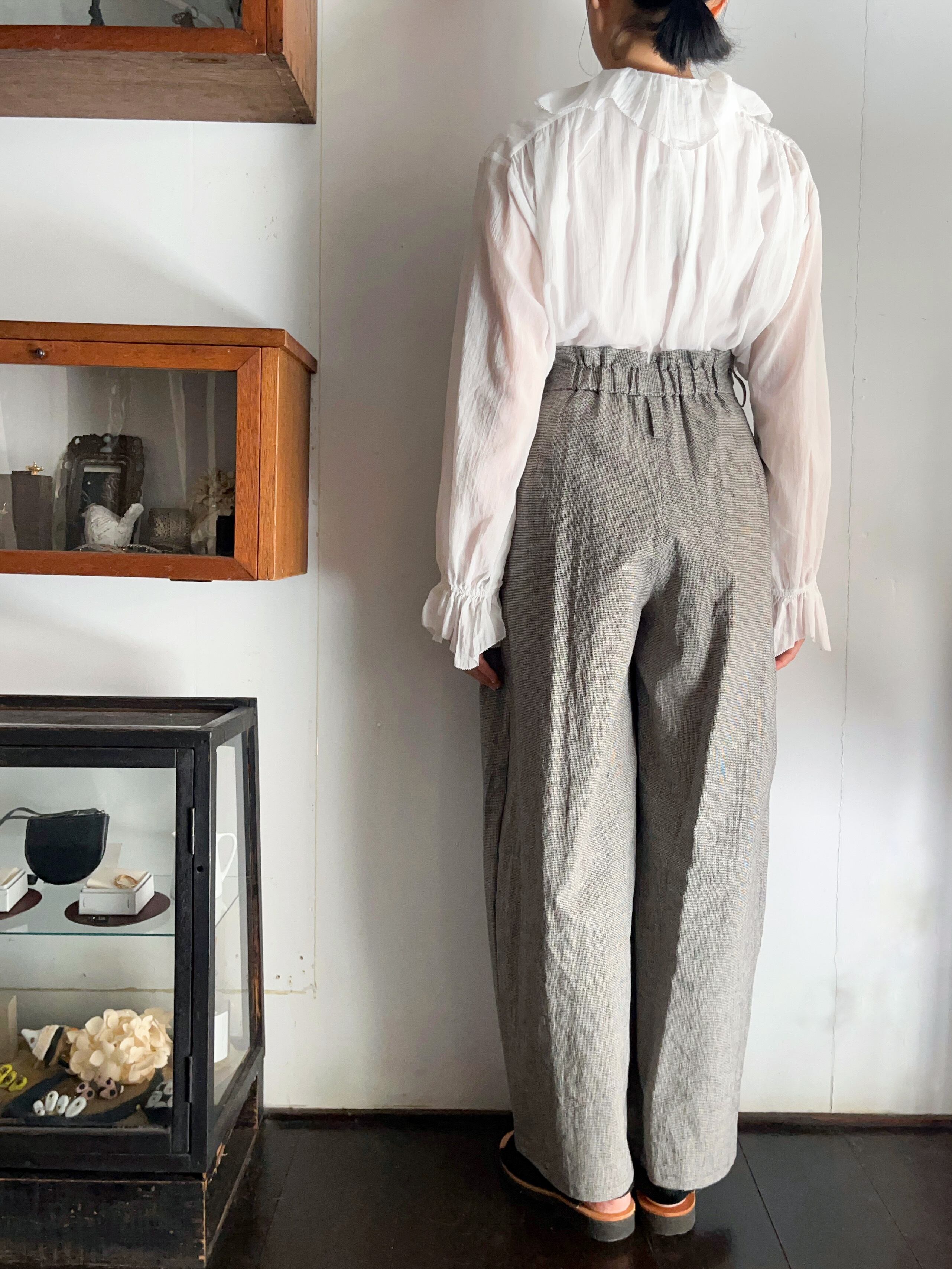 深いタックによる特徴的なカーヴィーシルエットが魅力のパンツ。