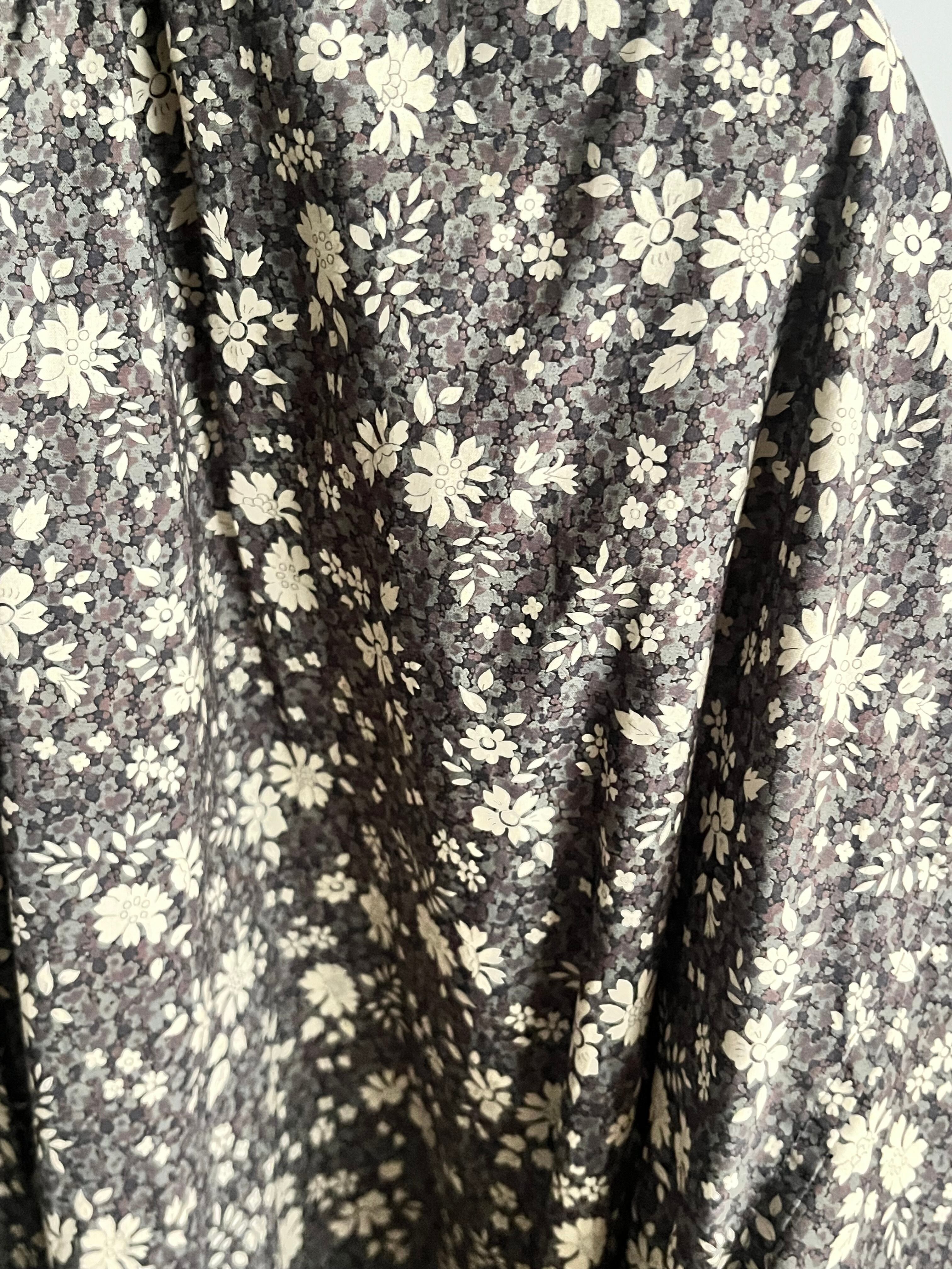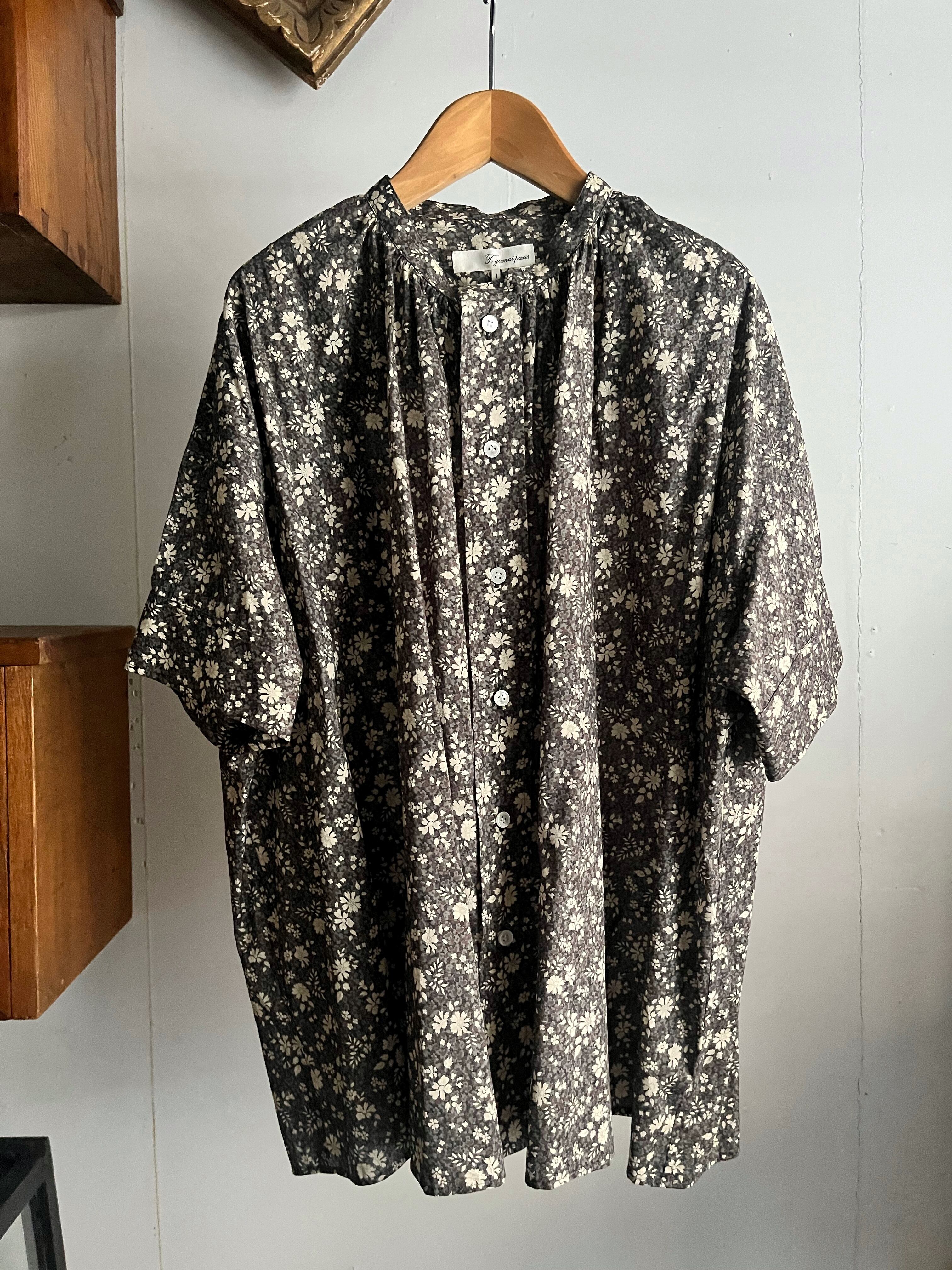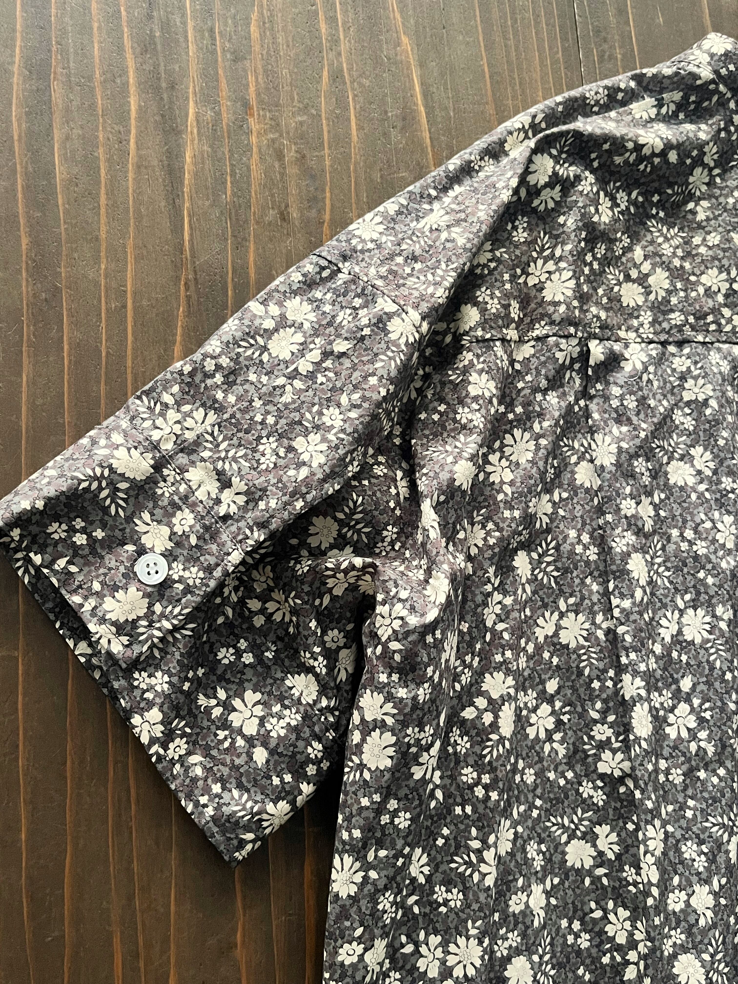 リバティの”CAPEL-PEPPER”柄を使用したバンドカラー半袖ブラウス。