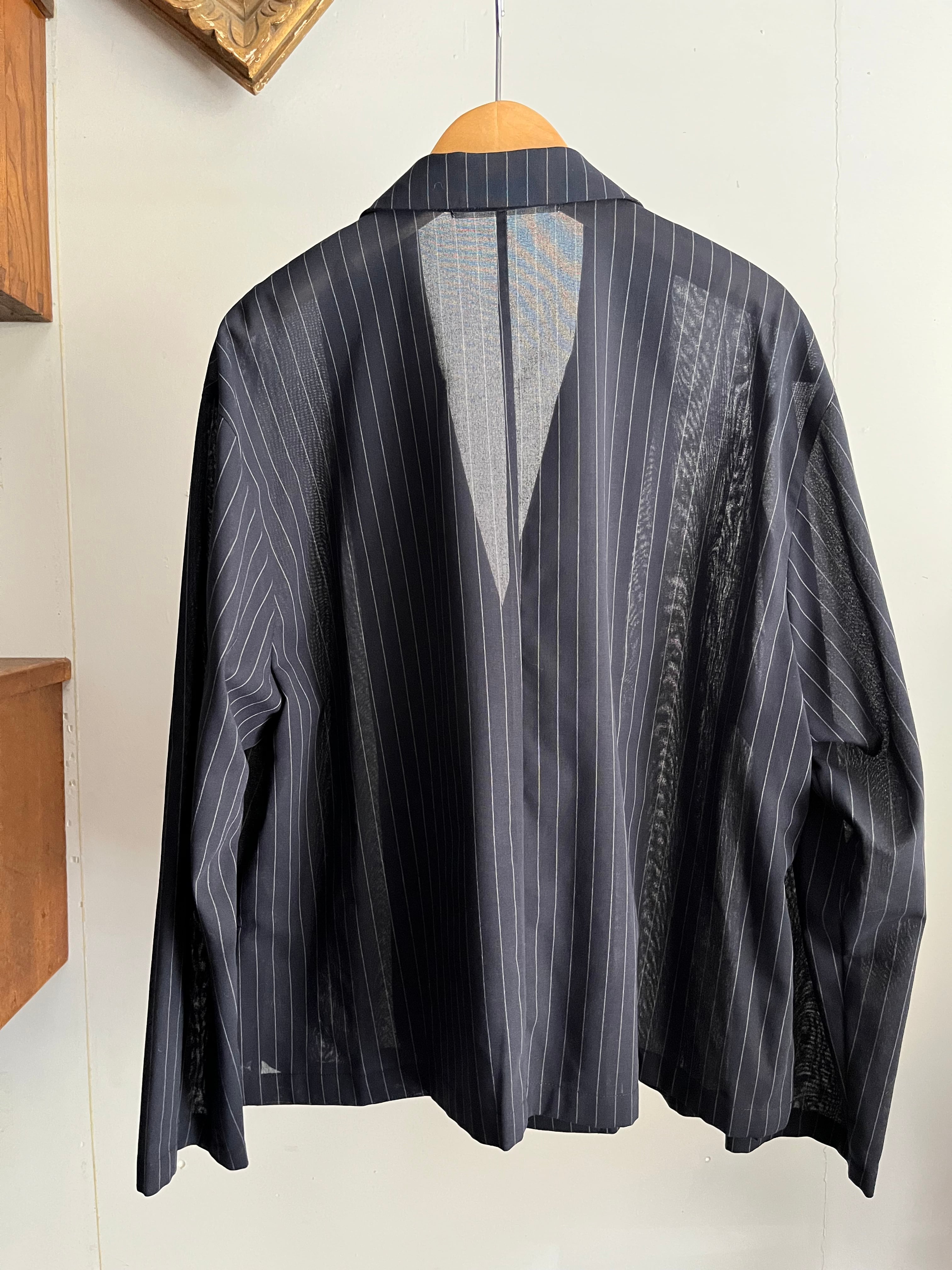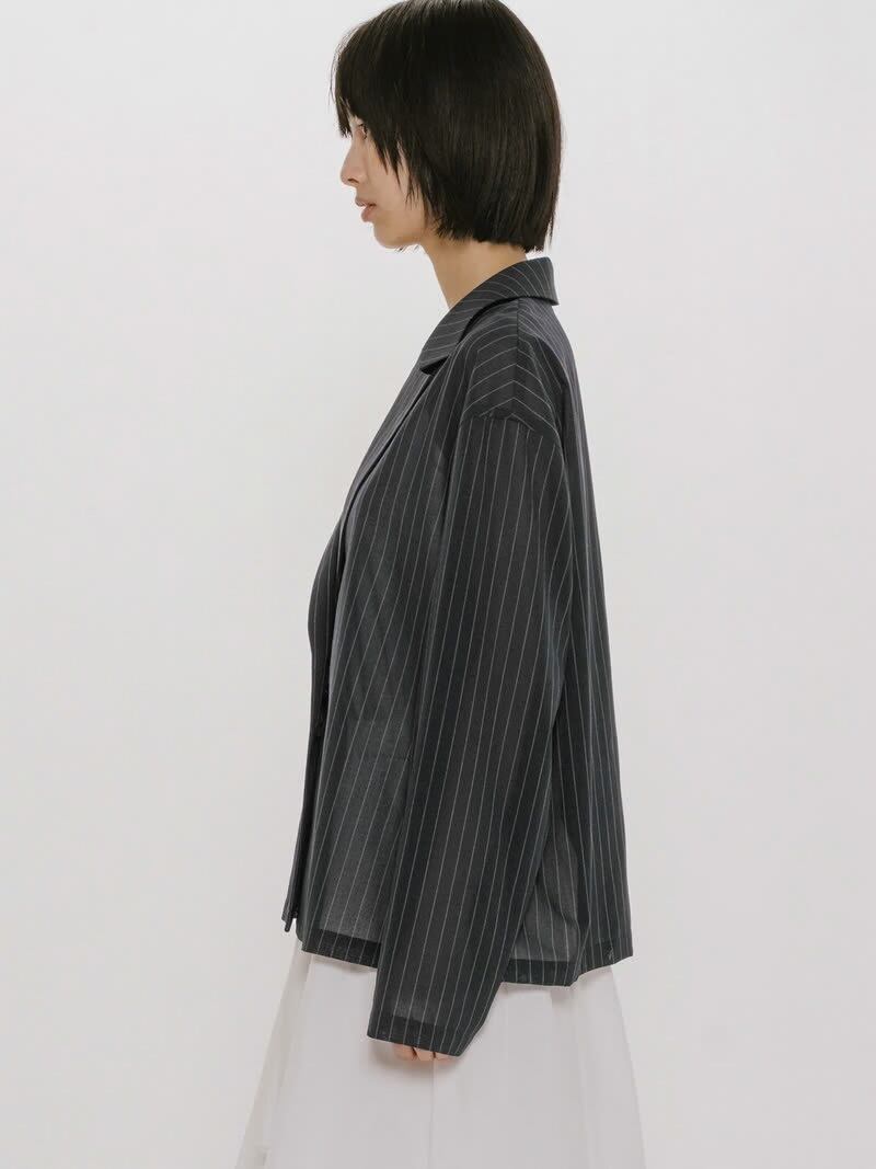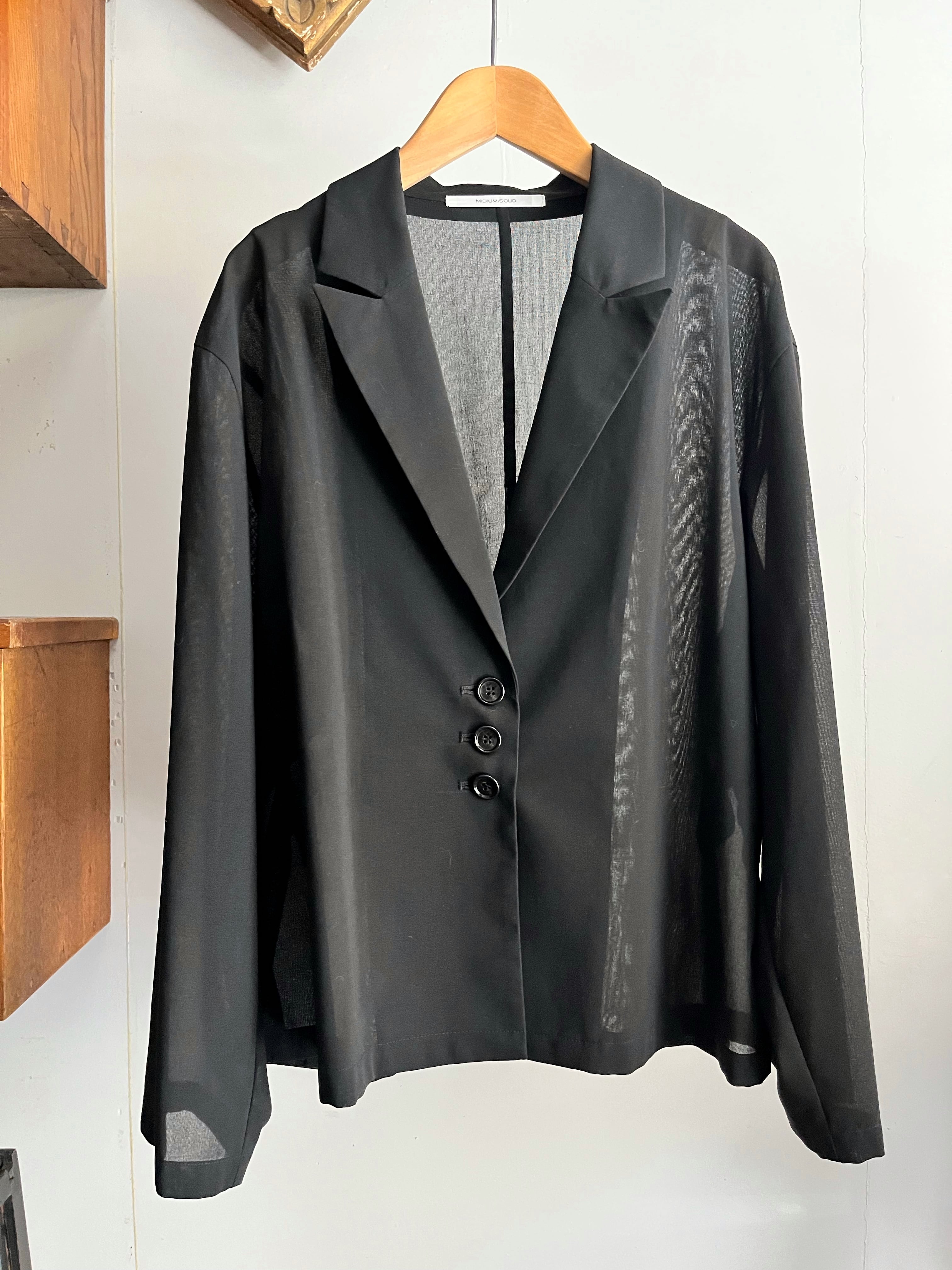 ウール調の見た目でありながら透け感ある珍しい生地を使用したシアーシャツジャケット。