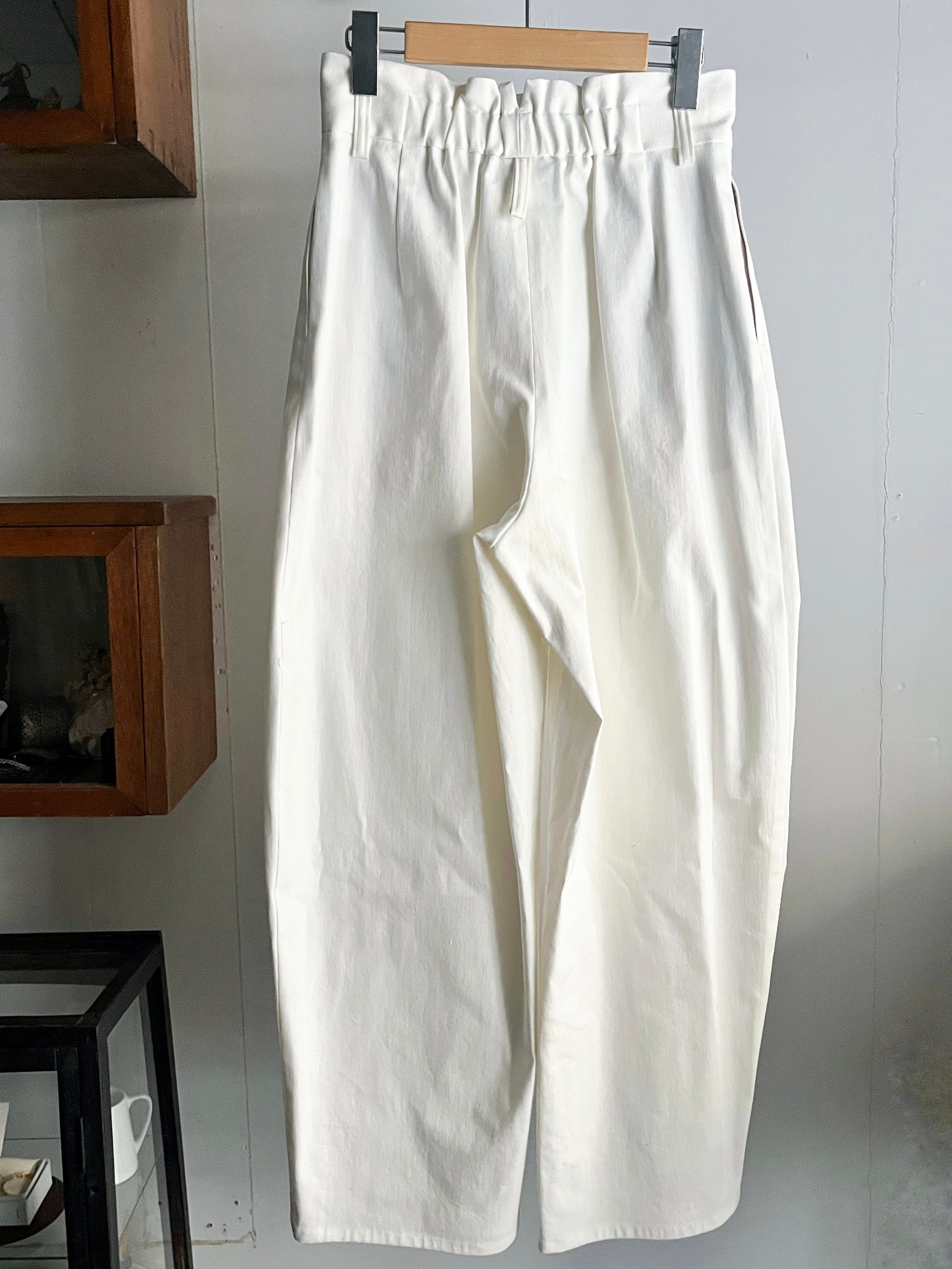 深いタックによる特徴的なカーヴィーシルエットが魅力のパンツ。