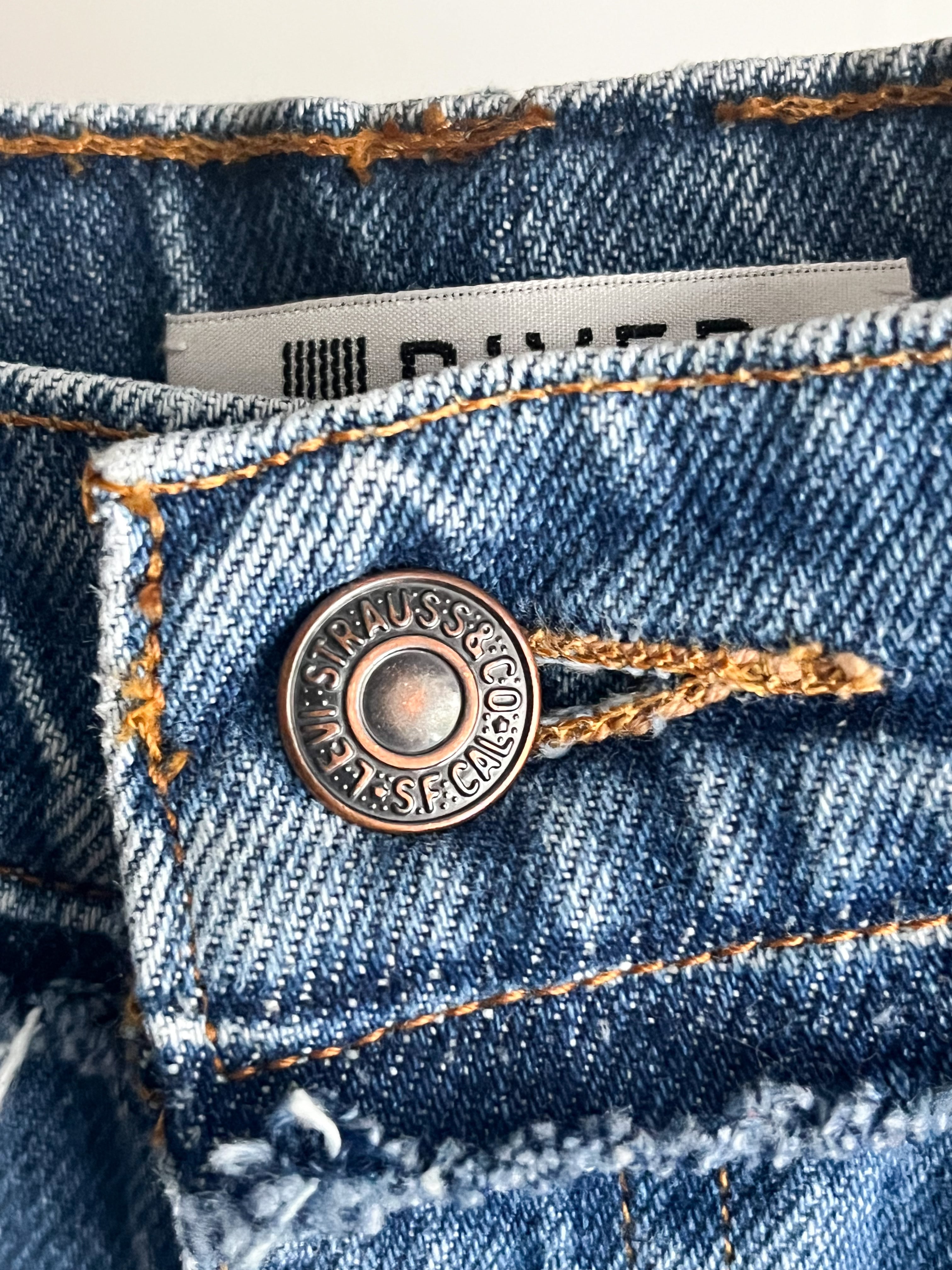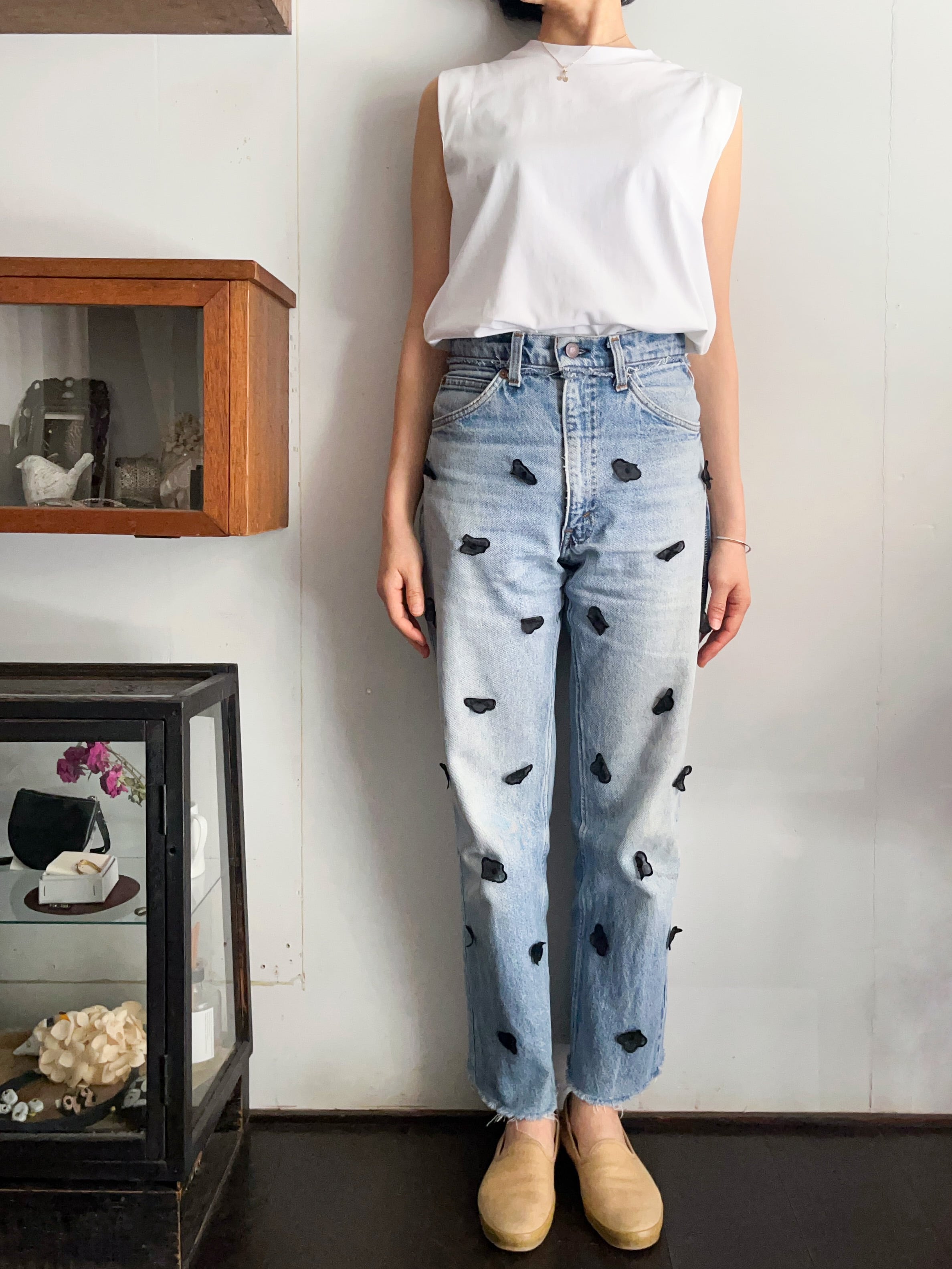 ユーズド特有の自然な色落ちや個体差を良いシルエットで履くことに指向したリメイクデニムシリーズ。生地は主にLevi's501 used denimを使用。1本を作るため、デザイナー自身が数本を解体、ドレーピングし、縫製までを行っています。