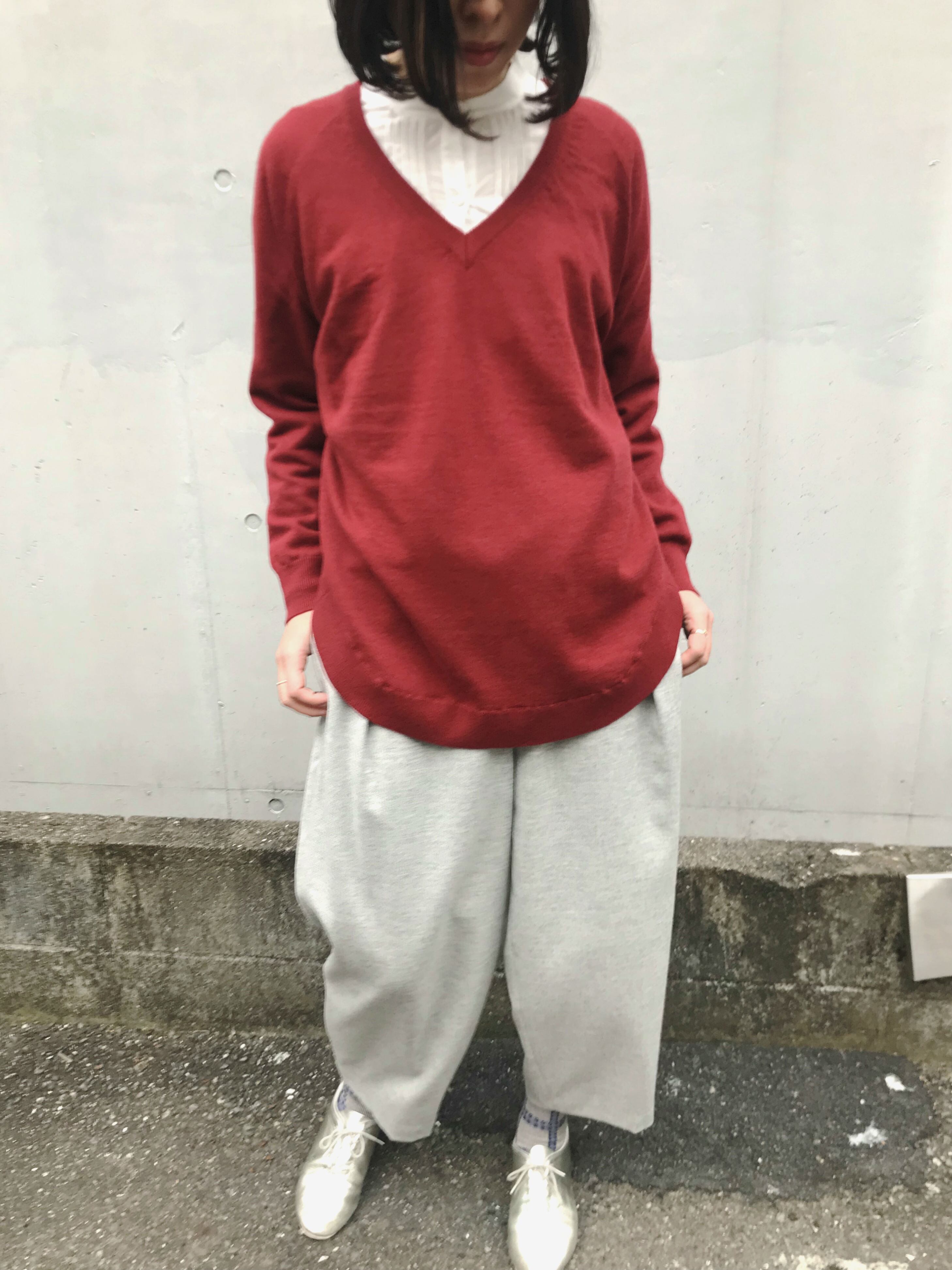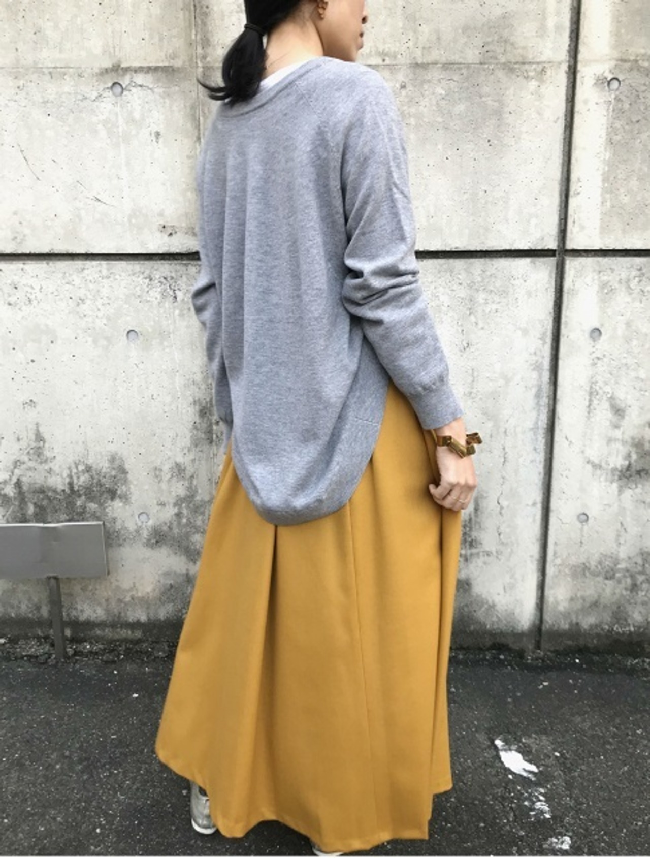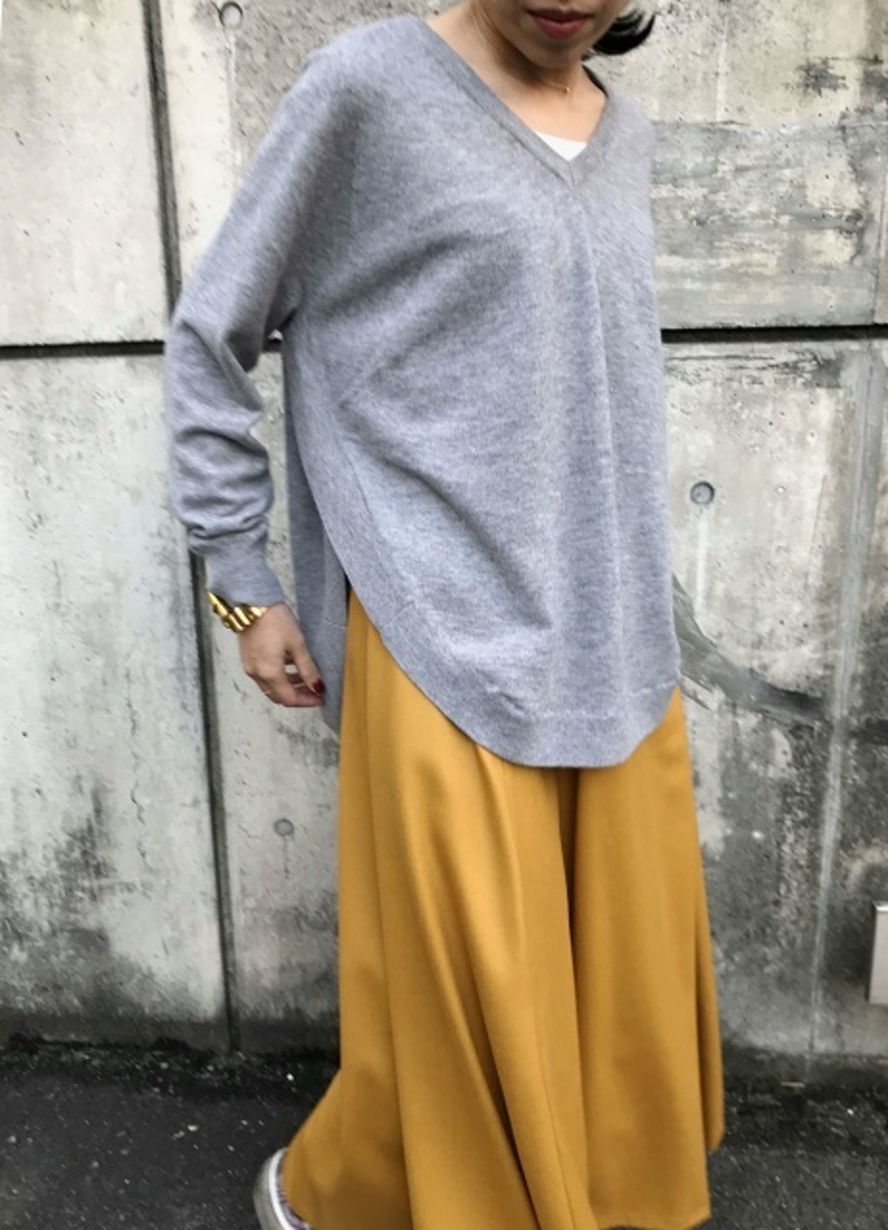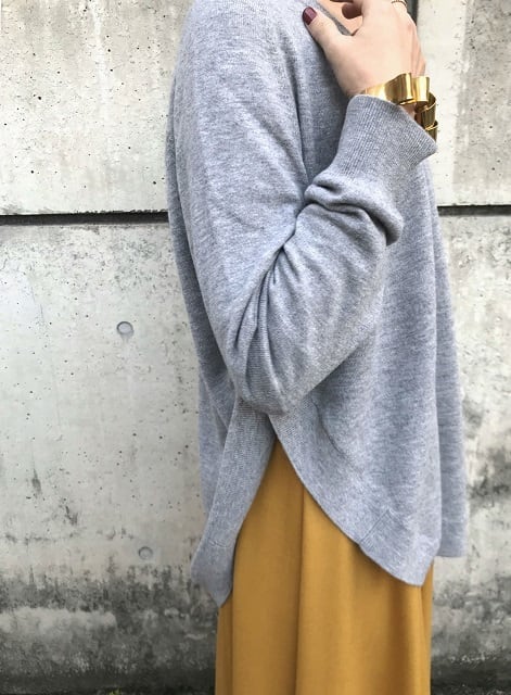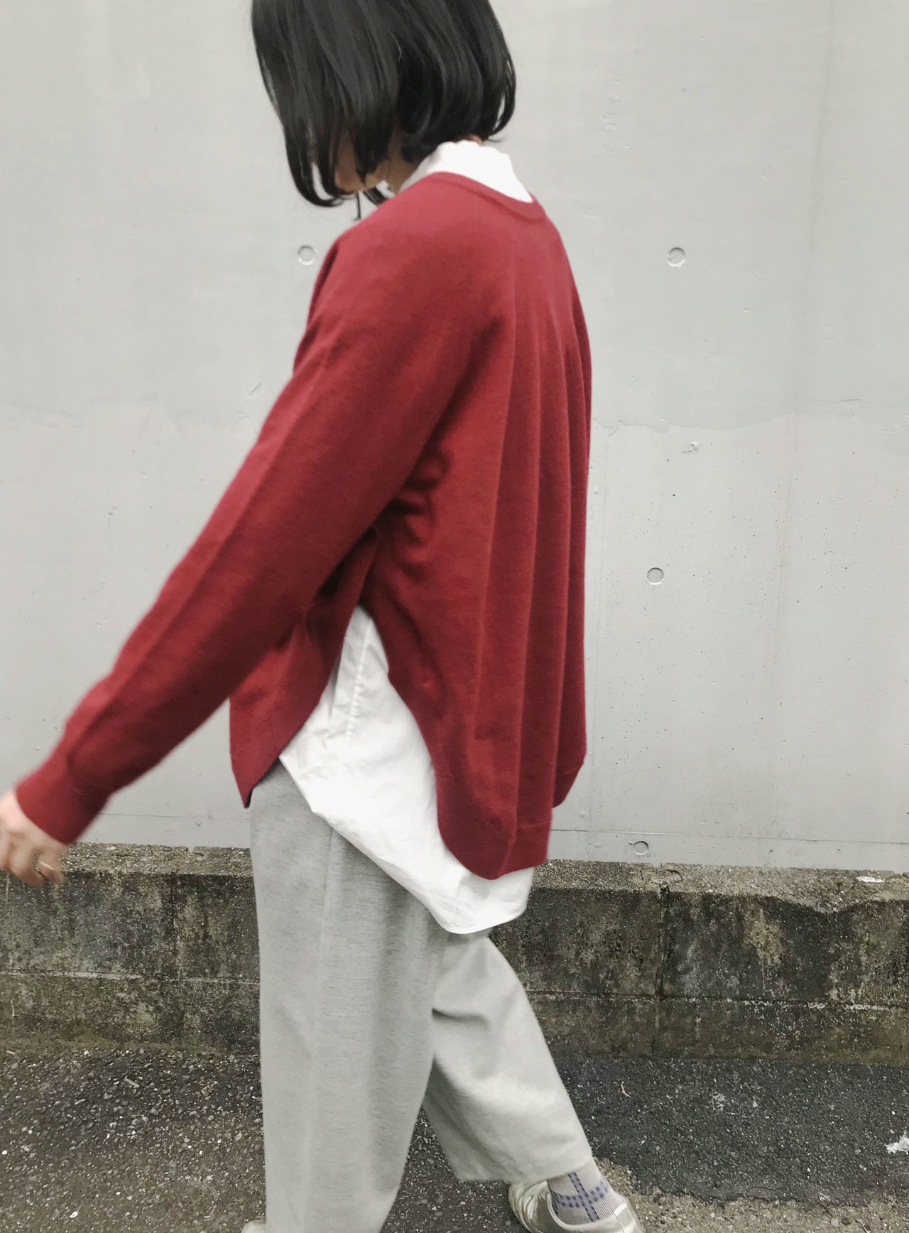 程よい薄さのニットは着回しの幅も広く、ネックの印象も