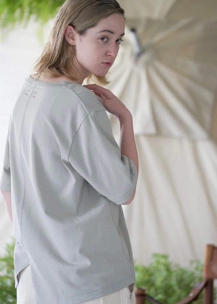 後中心裾に入れられたスリットが特徴的なTシャツ。
