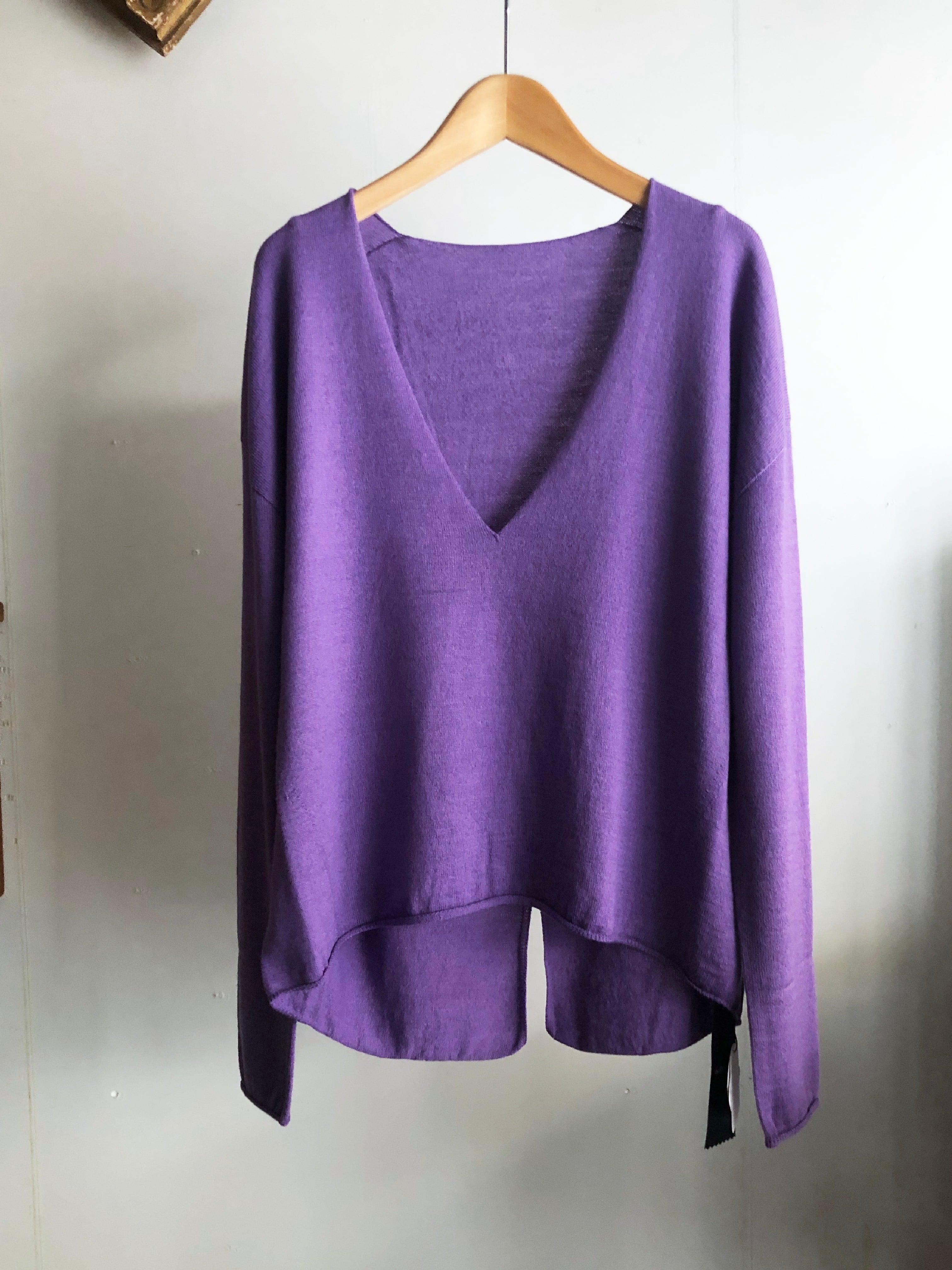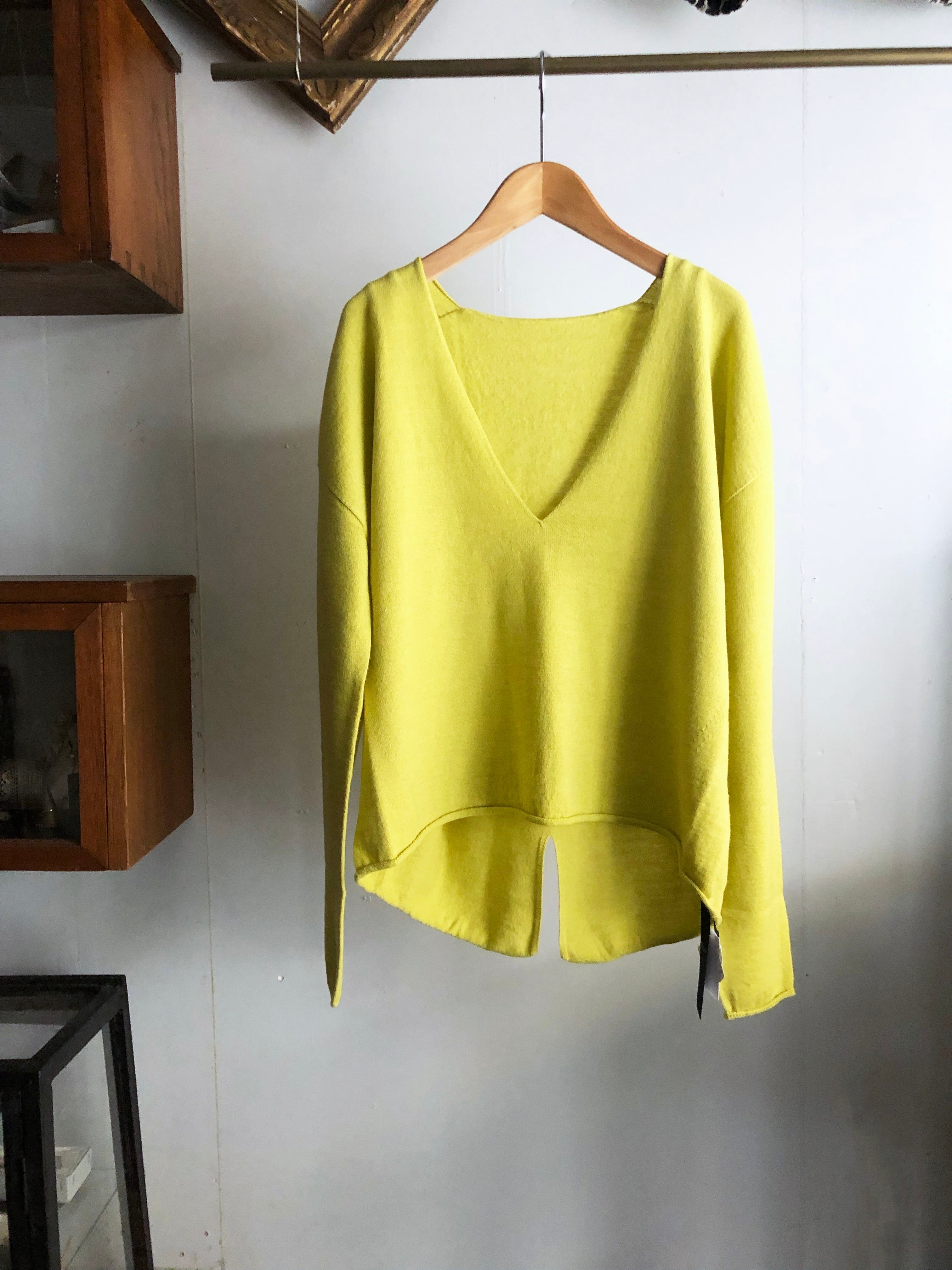 dolly sean ホールガーメントVネックバックスリットニット