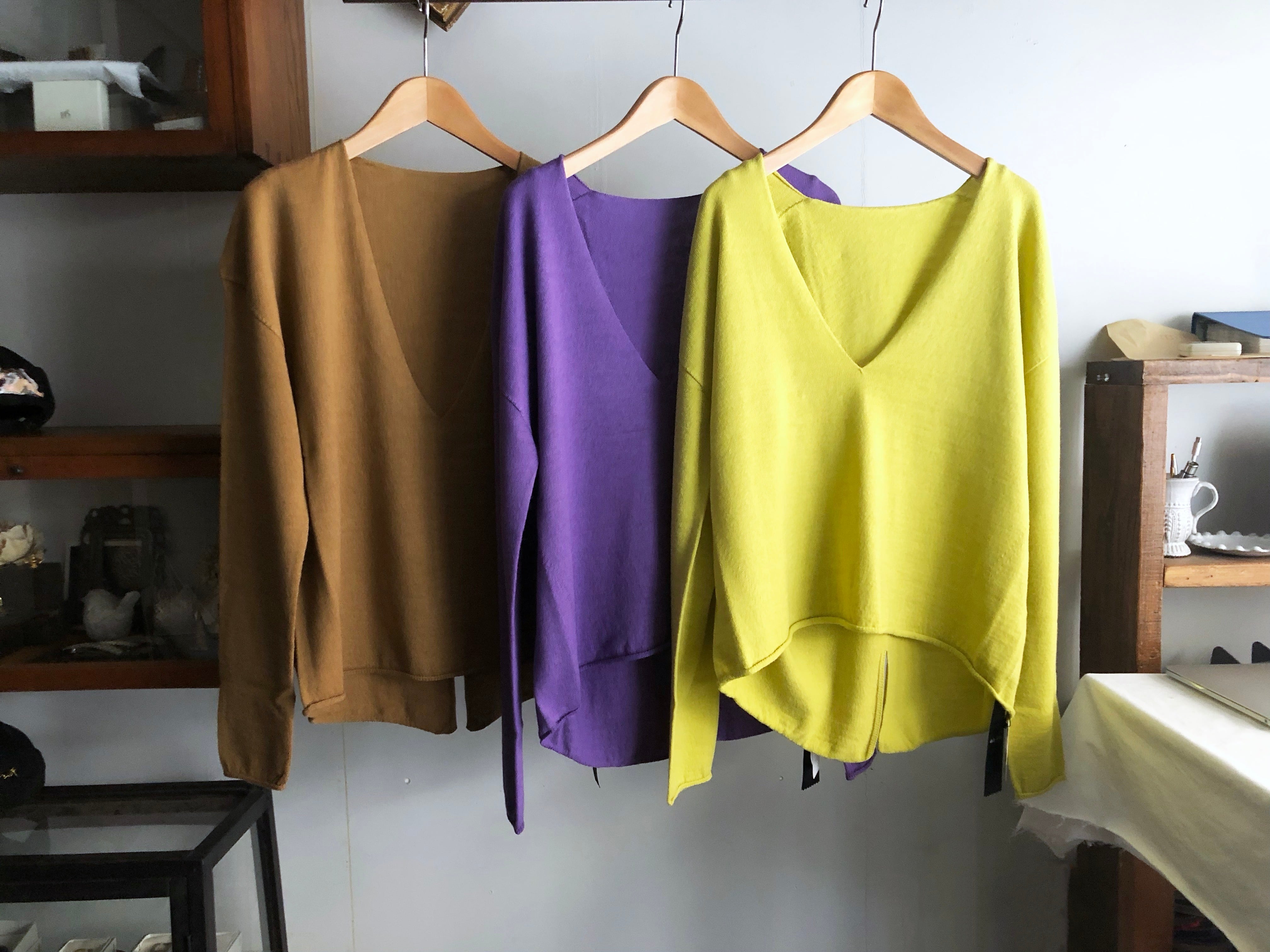 バックスリットがポイントのカラーニットです。