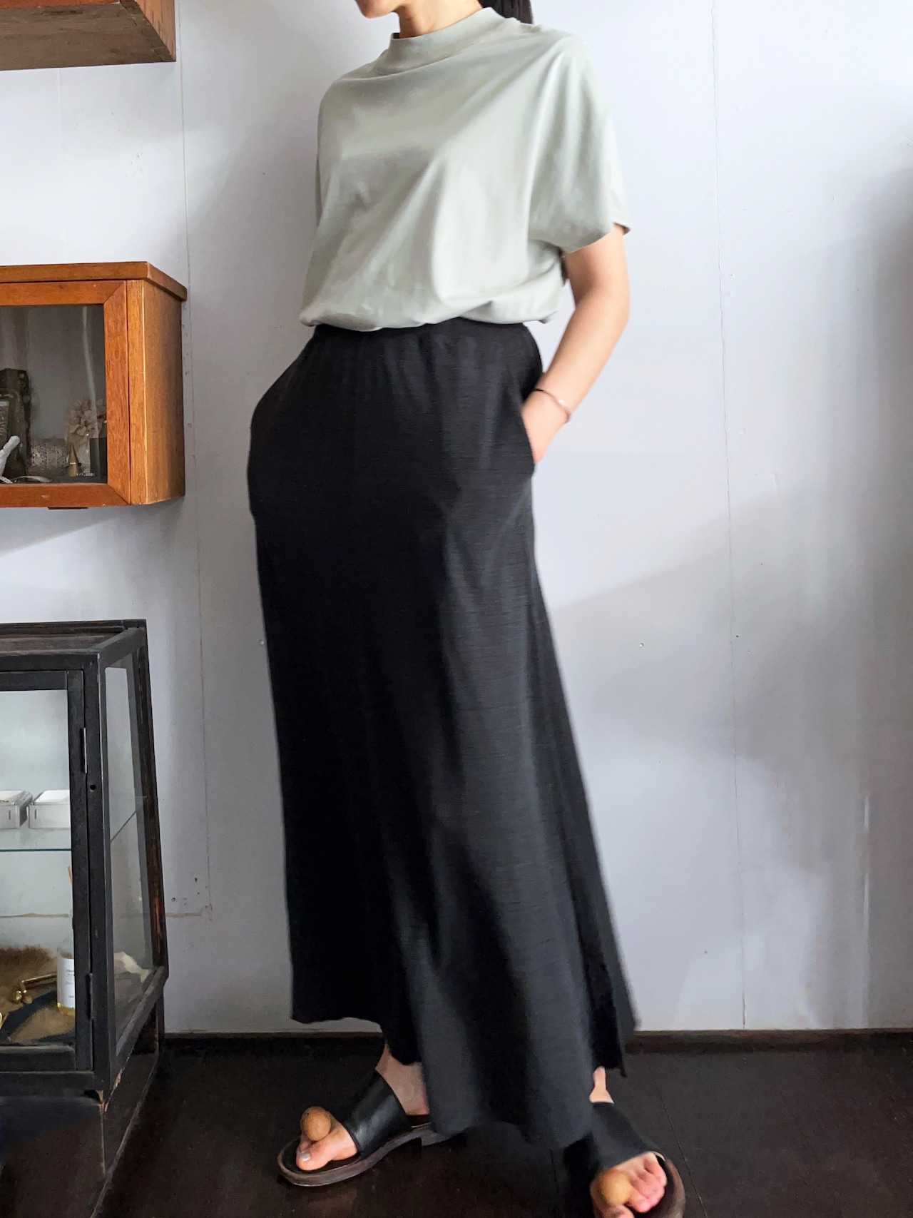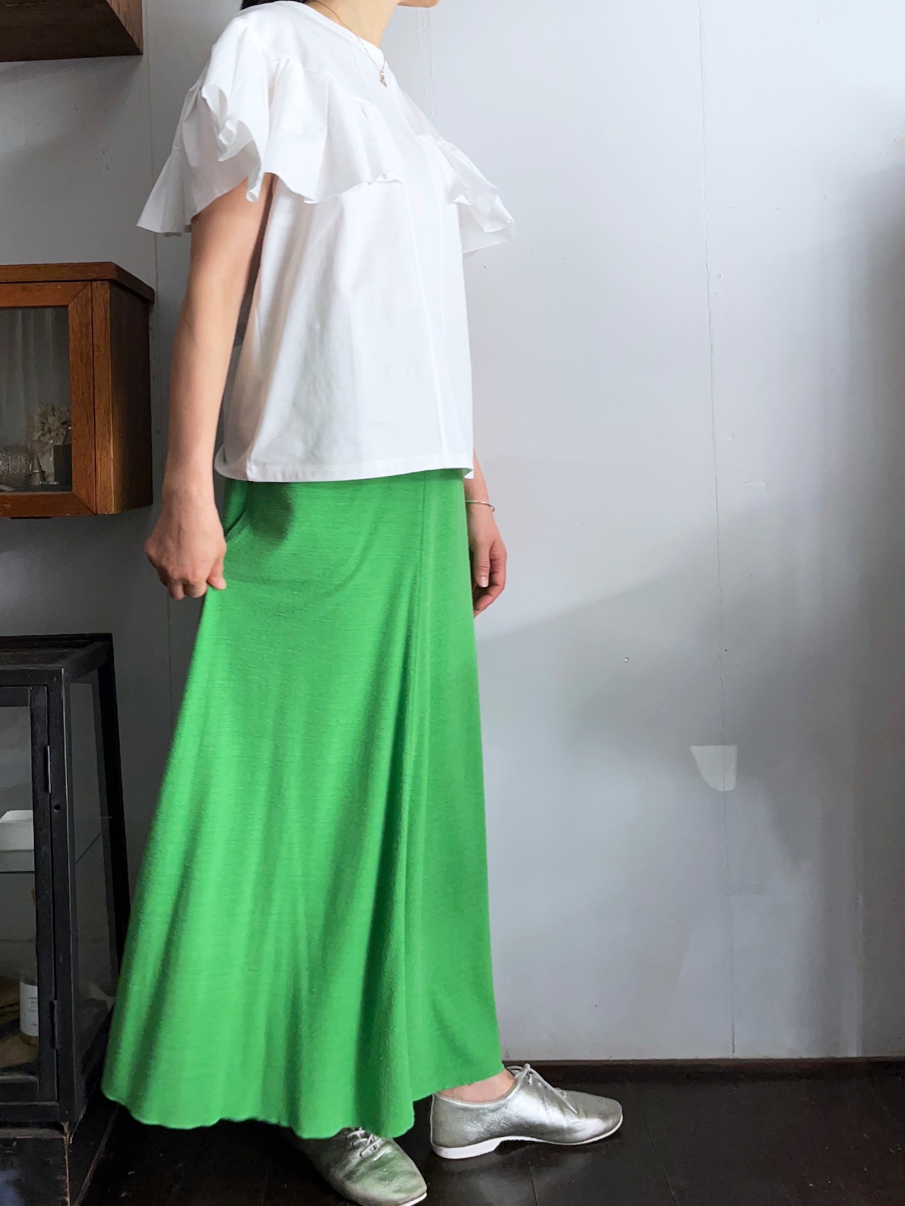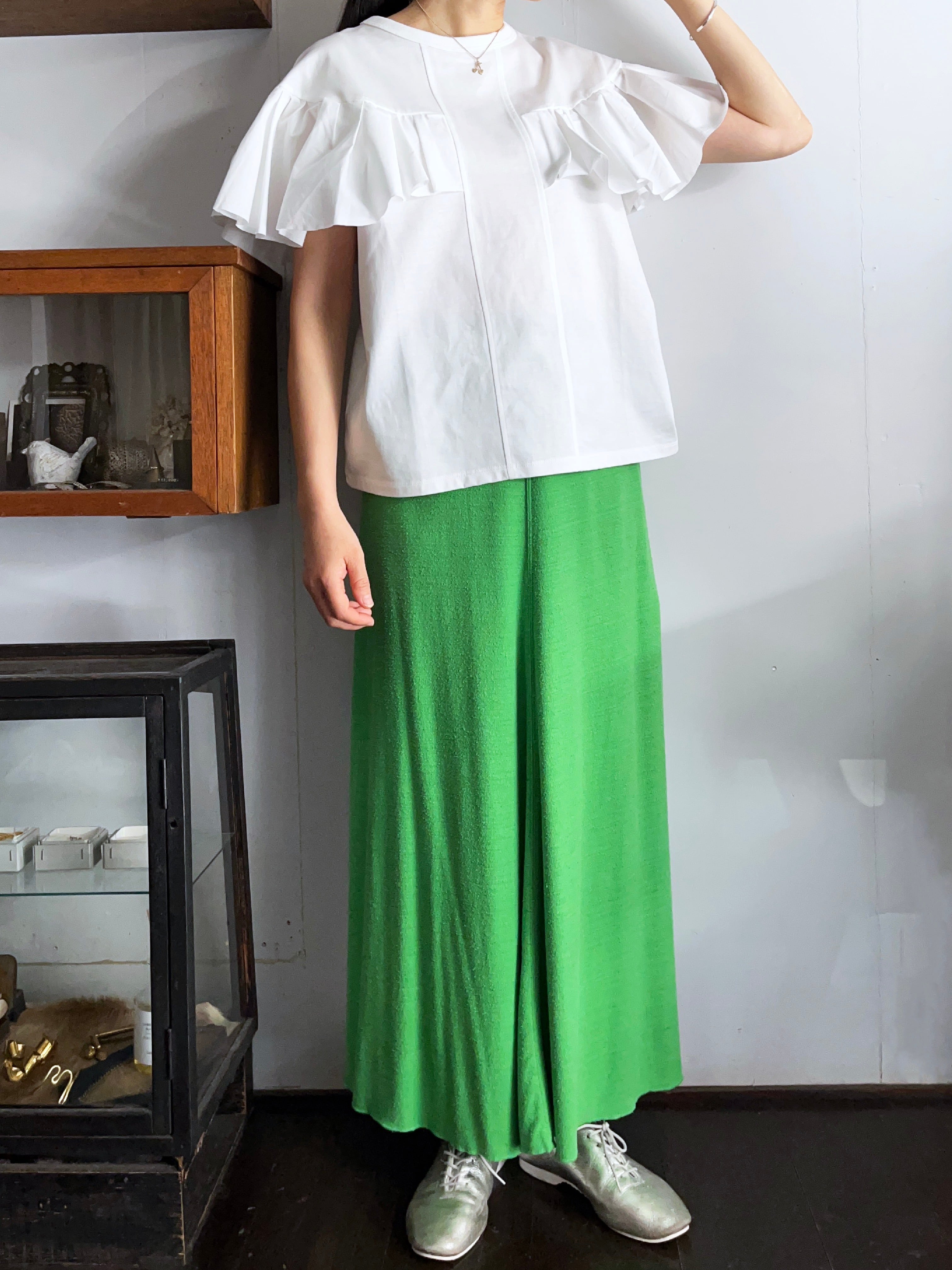 シルクジャージーの落ち感とドレープ性が綺麗なシルエットを作るフレアースカート。