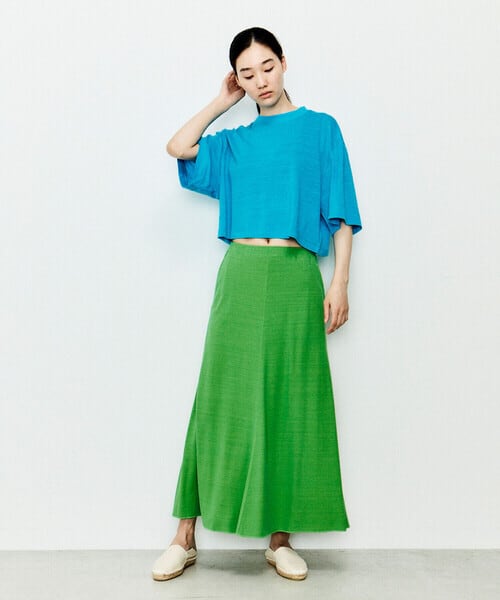 unfil ローシルク プレーンジャージーフレアスカート
