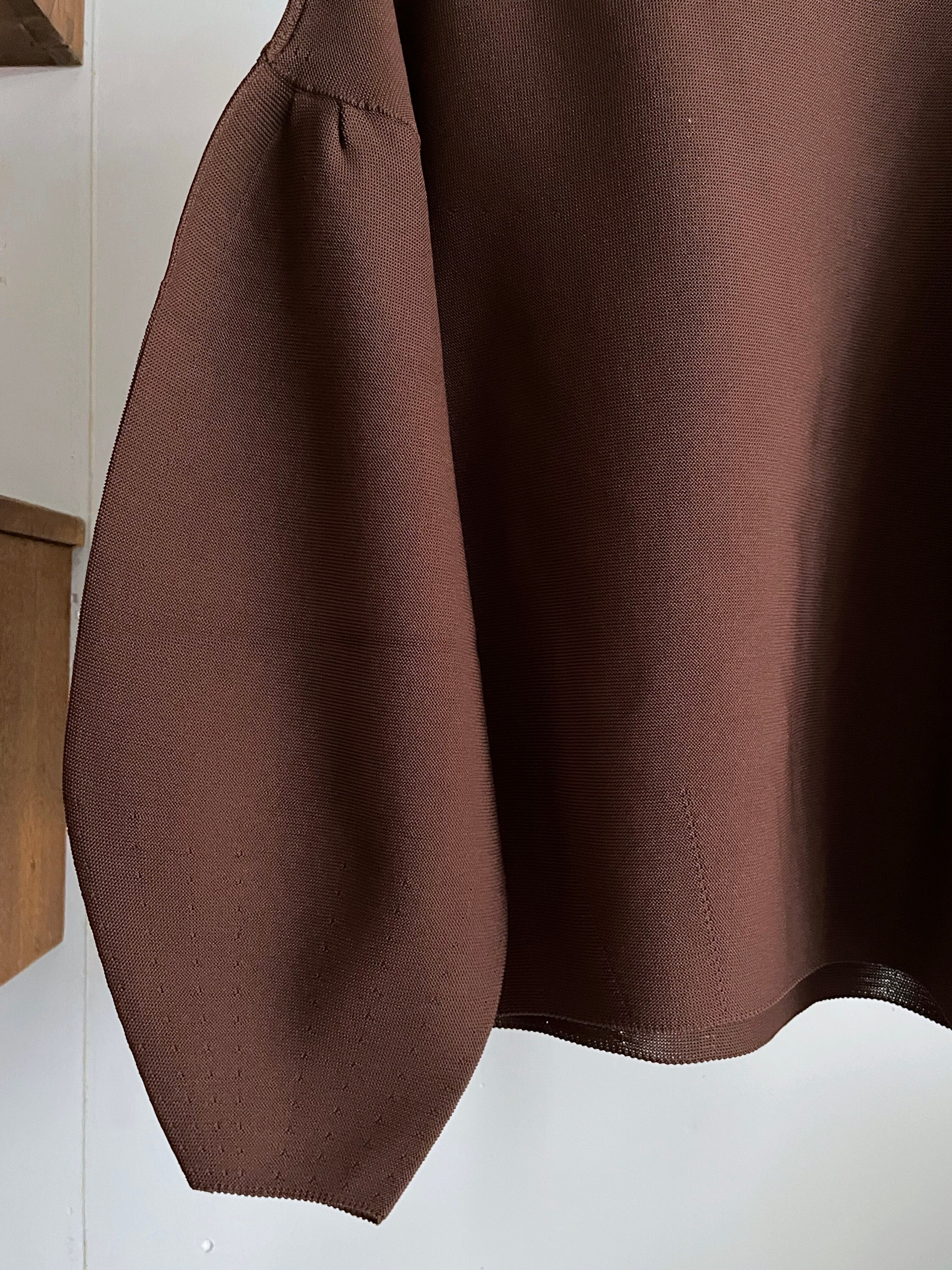 オフショルダーにはタックが施され、丸みあるボリュームスリーブが