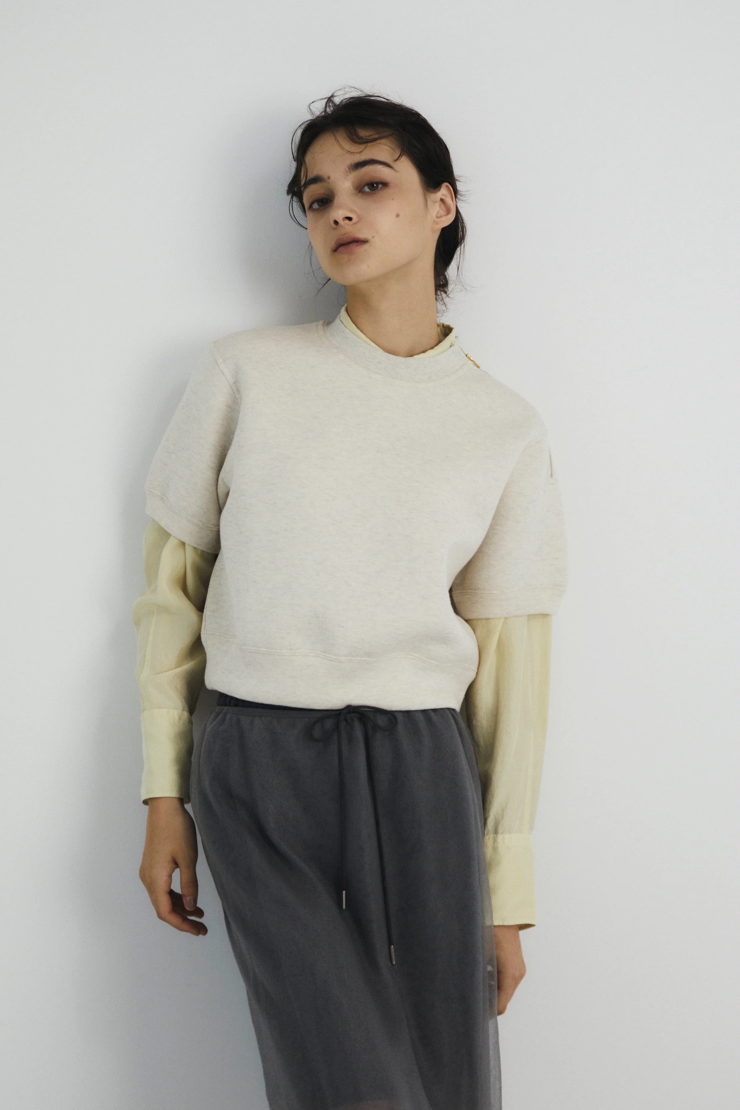 ショート丈の半袖プルオーバー。