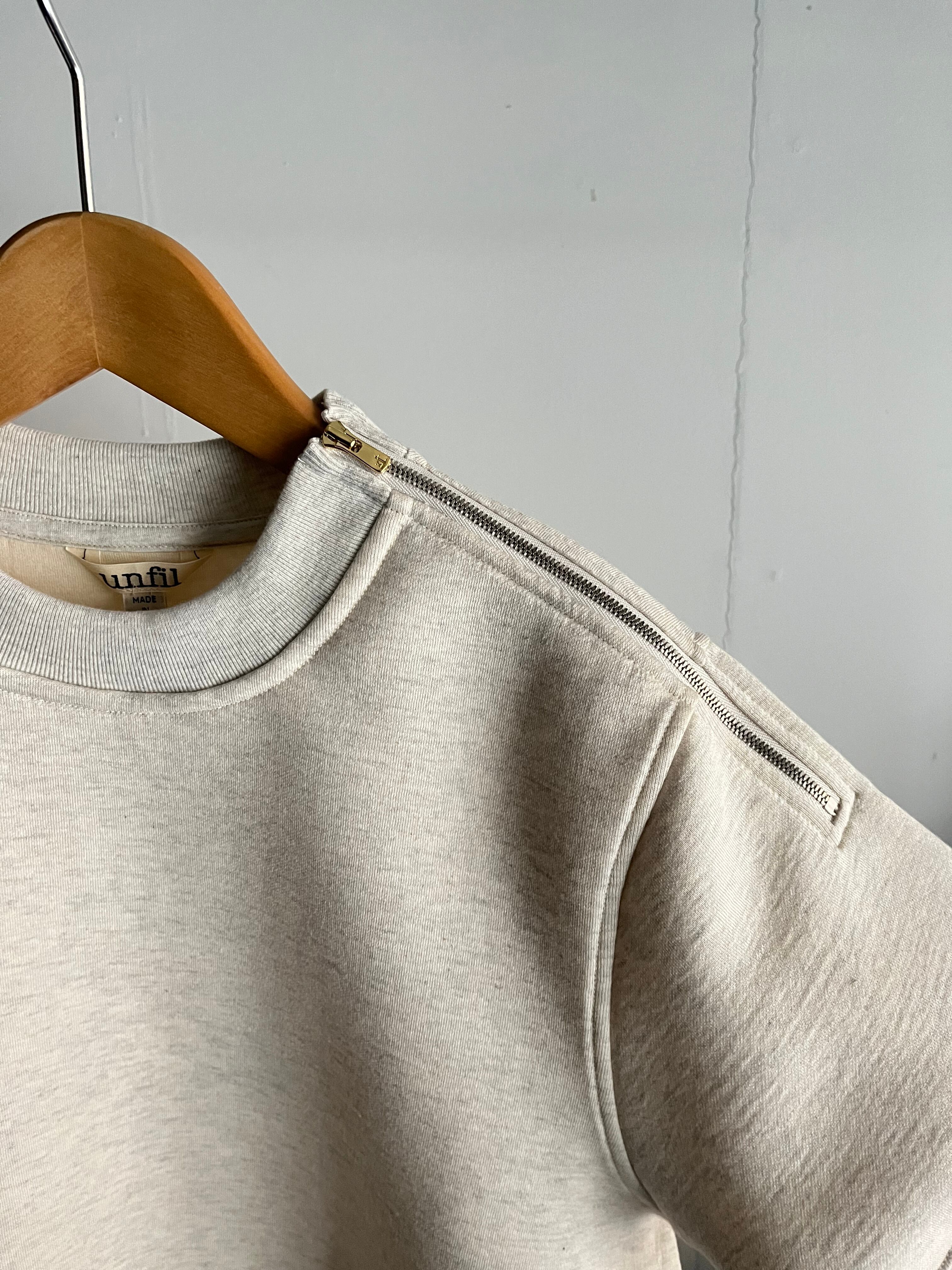 左肩部分に施されたゴールドとシルバーの組み合わせジッパーが特徴です。