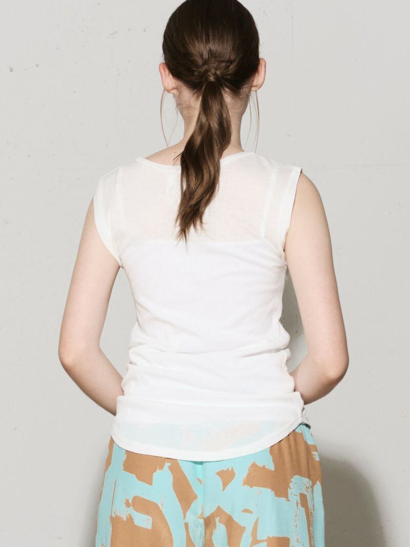 柔らかで肌触りの良いリヨセルコットンのテレコリブを使用したタンクトップ。
