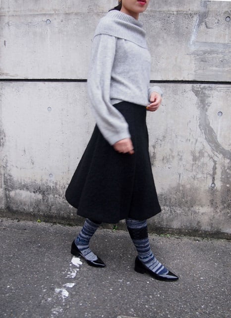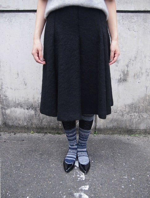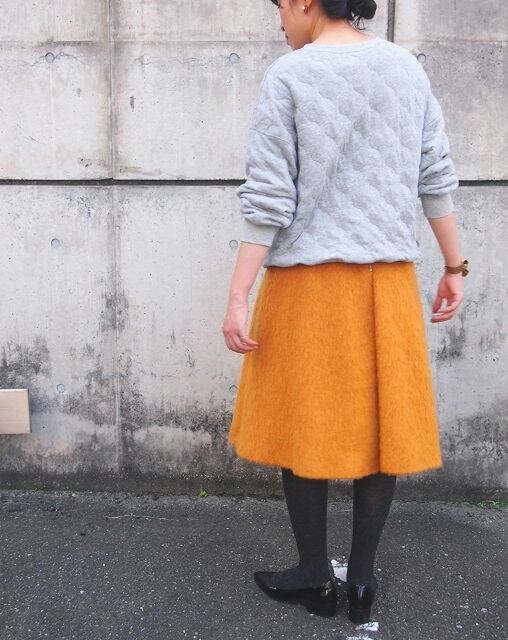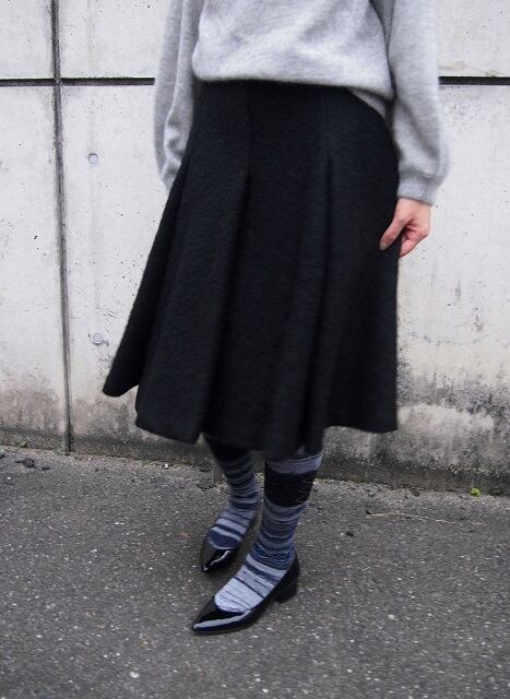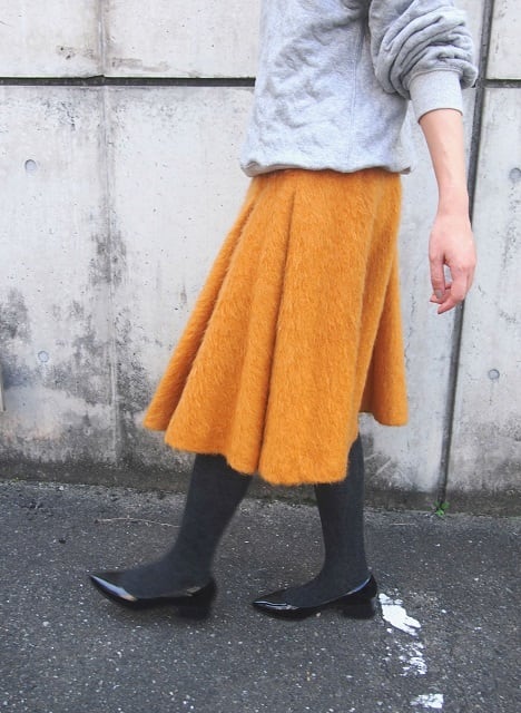 ひざ丈なので、足元のコーディネートもしやすいと思います。